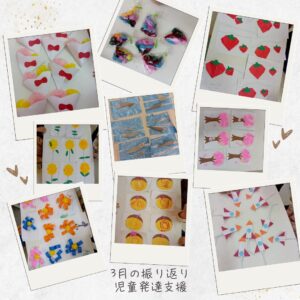 3月は新しい季節の始まりでもあり、ひな祭りや桜など春のモチーフを使った作品づくりが人気でした。色とりどりの素材を使いながら、子どもたち一人ひとりの個性や表現力が輝く場面が多く見られました。