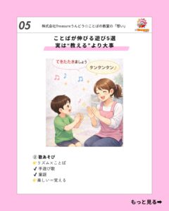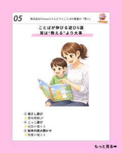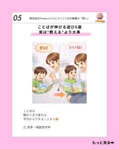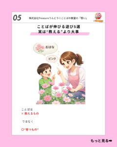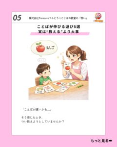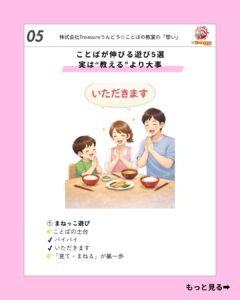お子さまのことばは、急に増えるものではなく、日々の遊びや体験の中で少しずつ育っていく力です。