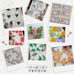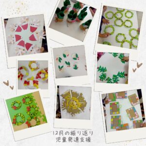 クリスマスツリーやサンタクロースなど、季節感あふれる制作物も多数登場し、子どもたちの個性と成長が輝いています。