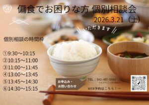 3月21日(土)、うんどう☆ことばの教室で「偏食でお困りな方 個別相談会」 を開催します。